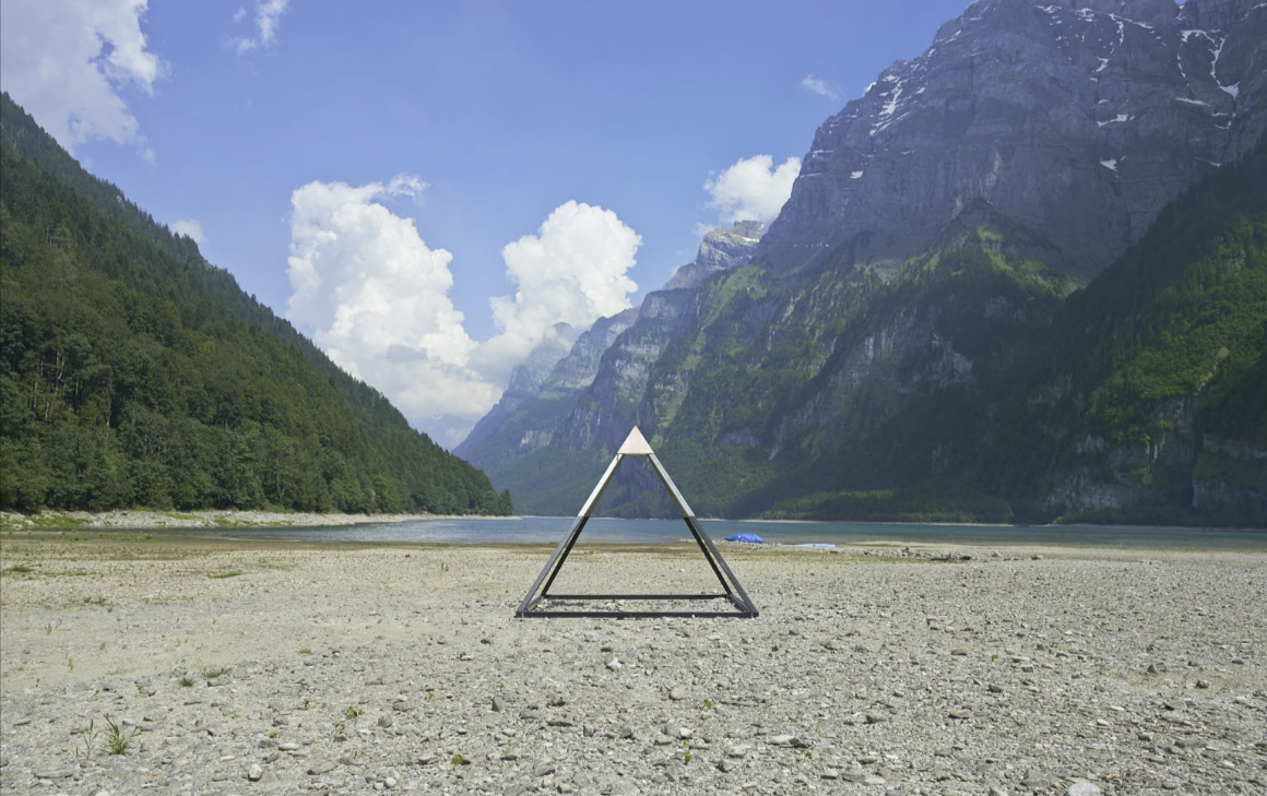 Die Skulptur Atlantis (2014) von KARIEL ist eine poetische Studie, die sich mit einem spezifischen Phänomen des Klöntaler Stausees beschäftigt: Eine Pyramidenkonstruktion, die zu Beginn der Triennale auf festem Grund steht, versinkt mit dem Anstieg des Wasserspiegels im Verlaufe der Sommermonate grösstenteils im Wasser. Damit werden sowohl lokale als auch globale Themen angesprochen wie beispielsweise menschliche Eingriffe in natürliche Systeme und der weltweit vielbesprochene Klimawandel. Es schwingen aber auch mythologische Themen und Reminiszenzen an versunkene Zivilisationen in der Arbeit mit. Die Verschmelzung von Themen des Mystizismus, der Alternativgesellschaft und der Formensprache der Moderne ist ein Hauptfokus in der kollaborativen Praxis von KARIEL.