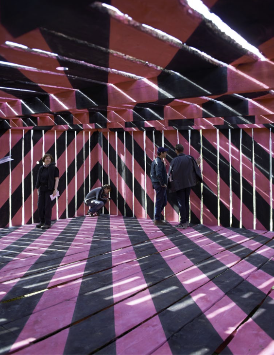 Der Designer Jerszy Seymour versteht sein Arbeitsfeld in erweiterter Weise. Er betrachtet Design als Gestaltung von vielerlei Situationen, als generelle Beziehung des Menschen zur gebauten und zur natürlichen Welt, zu Mitmenschen und sich selbst: sowohl die Inhabitation der Welt als auch des Denkens. Er stellt Fragen zu alternativen Lebensgestaltungen und hat für die Klöntal Triennale eine begehbare Installation entwickelt: Eine abstrakt-ekstatisch bemalte Holzarchitektur bietet mitten in der Berglandschaft Raum zur Reflexion über alternative politische und wirtschaftliche Strukturen jenseits von Nationalstaaten. Dieses Extra National Assembly #1 (2014) ist für alle offen, und bietet temporären Unterschlupf. Der alternative Denkraum unterliegt einer fiktiven, planetarisch und global statt nationalstaatlich ausgerichteten Orientierung; er erlaubt Blicke in Richtung Nordatlantik, wo das Zusammentreffen von Wasserströmungen zu starker Planktonvermehrung führt ebenso wie solche auf einen fiktiven Planeten oder ein Todestotem. Damit fokussiert er mit den Mitteln des Humors autonome Erneuerungsprozesse und sucht auf visionäre Weise nach einer Transformation von Realität. Gemäss dem Manifest seines laufenden Projektes «New Dirty Enterprises», dem «Non Gesamt Gesamtkunstwerk», bietet das Extra National Assembly #1 ein Angebot zur konspirativen Versammlung und Formulierung einer neuen Gesellschaftsform – selbstverständlich ohne autoritäre Kontrolle.